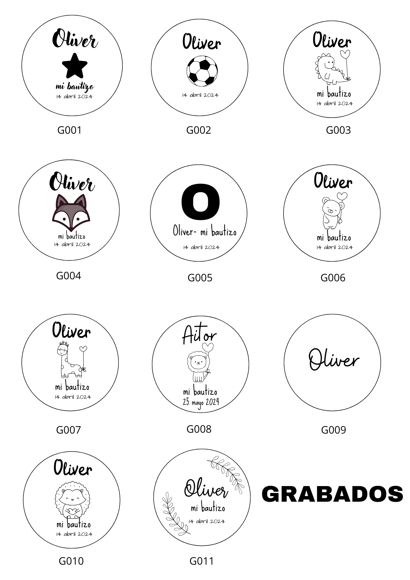 De entre las opciones mostradas en la imágen, elige un código para seleccionar el grabado deseado